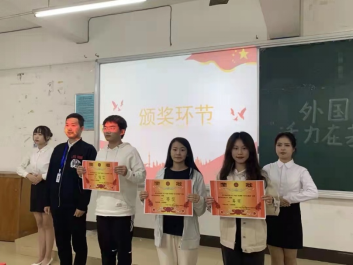 最后,由金沙学工组长张英坤给获得前三名的班级颁奖,依次为:21英语4班、21英语3班、21日语2班。